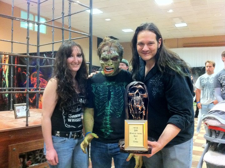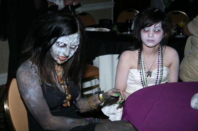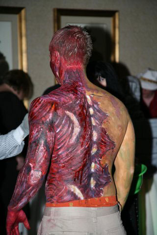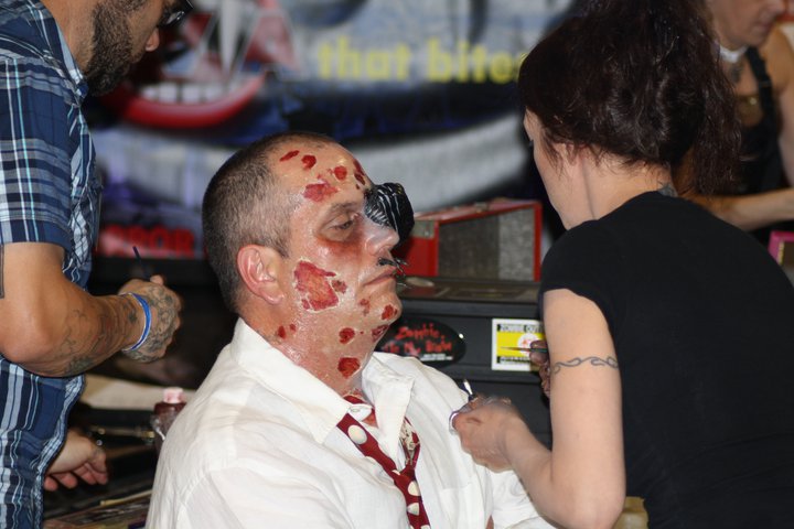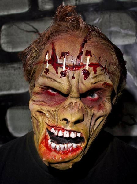 - Each team should bring a full and complete makeup kit with them. Appliances are allowed, store bought or custom made, however, remember, the TOTAL amount of space that appliances take up cannot exceed 1/3rd of the total head area. The reason for this is that this is a contest of skills, and not how much money you can spend to be pre prepared. Please DO bring traditional 3-D materials such as nose putty, latex, derma wax, cotton, collodian etc..All the things a well stocked haunt kit should contain. Never know what you’ll end up needing.